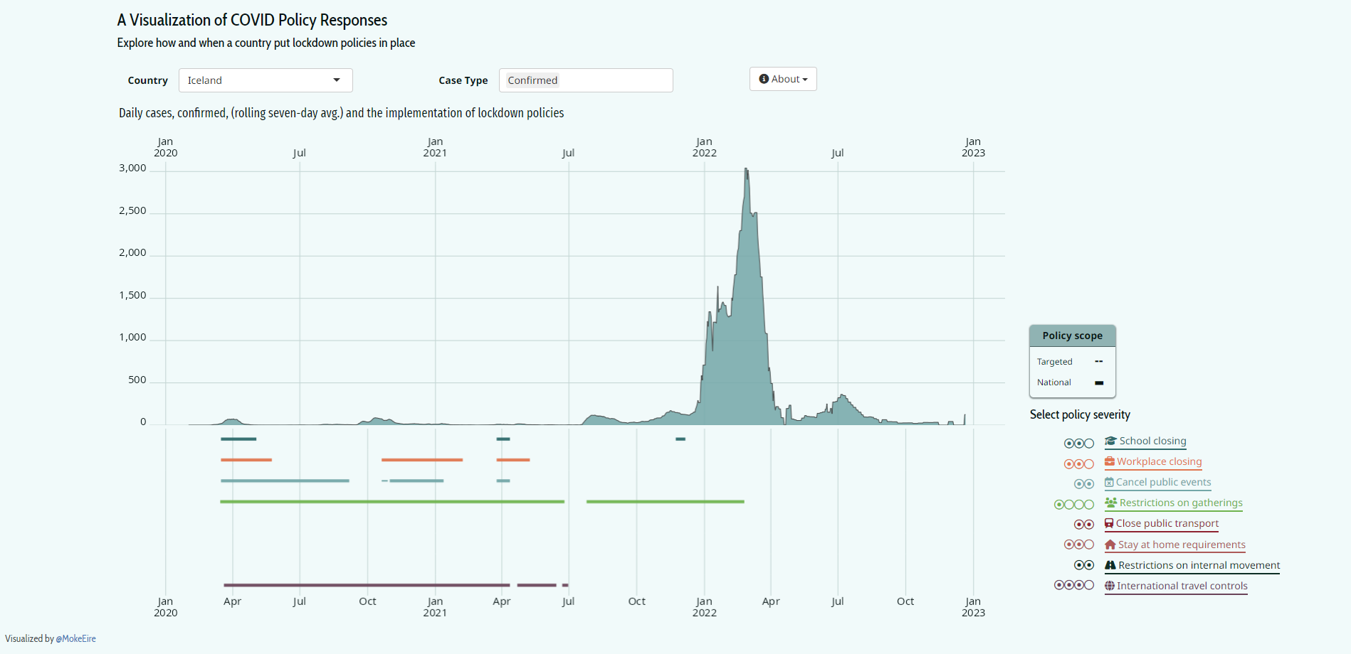 An old project that contrasts the lockdown policies employed by different countries with their COVID-19 case data. Looking back, it’s painfully hacky. I was doing a lot of HTML and CSS learning and really wanted to mess around with pure HTML/CSS solutions which resulted in the cool but quirky design of the policy severity selection buttons.